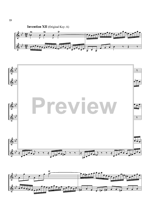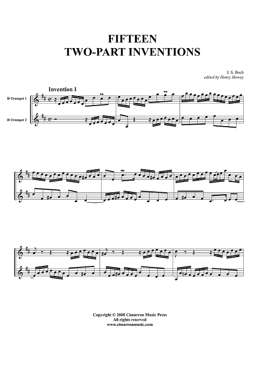 Digital Sheet Music for 15 Two-Part Inventions by Henry Howey, Johann Sebastian Bach scored for Trumpet Duet; id:416965