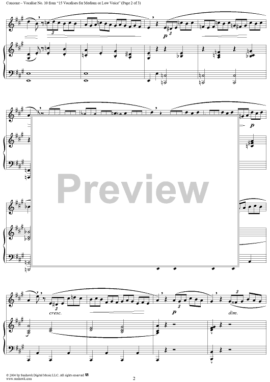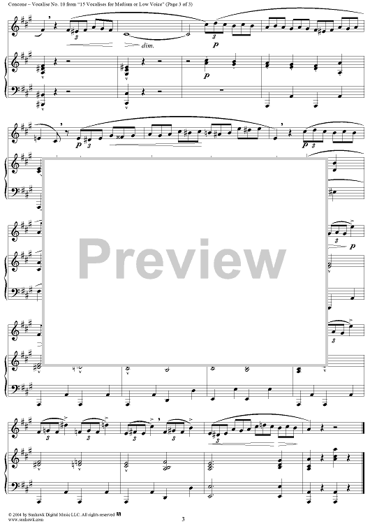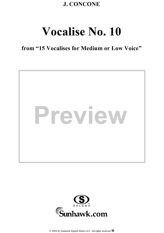 Digital Sheet Music for 15 Vocalises for Medium or Low Voice, Op. 12: No. 10 by J. Concone scored for Voice/Piano; id:303279