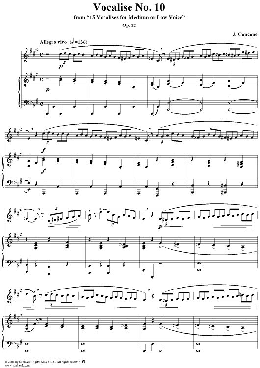 "15 Vocalises for Medium or Low Voice, Op. 12: No. 10" Sheet Music by J. Concone