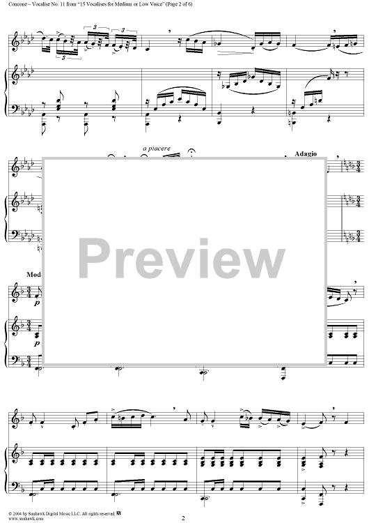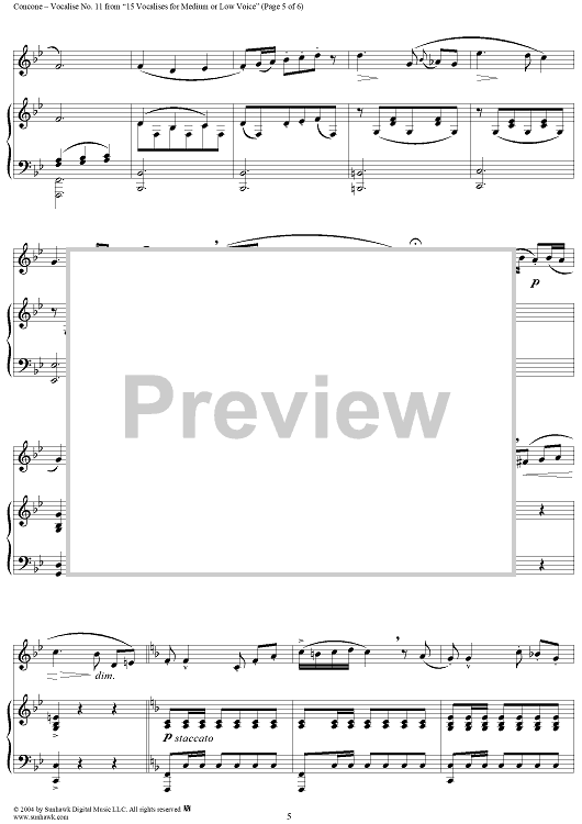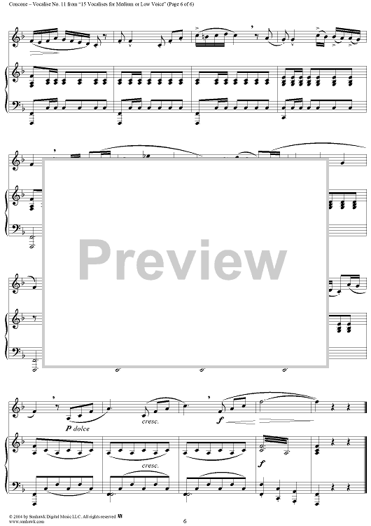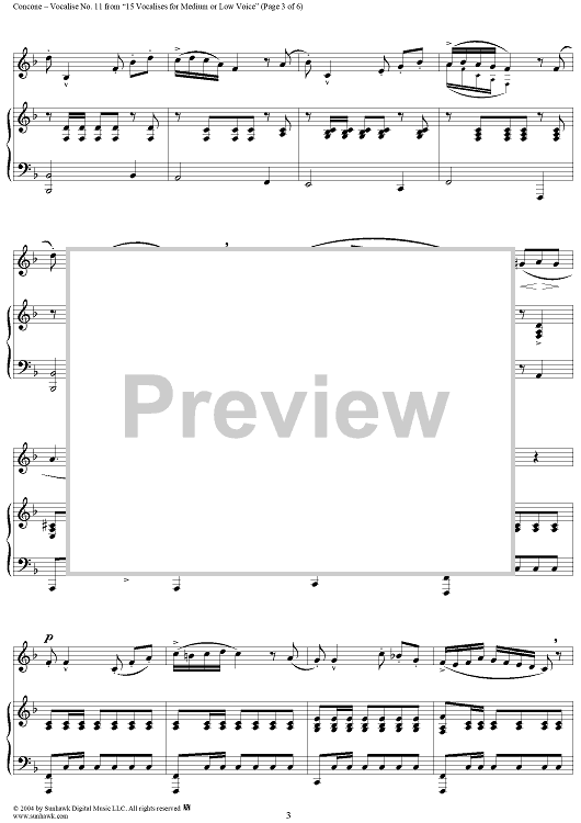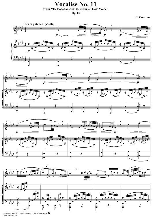 Digital Sheet Music for 15 Vocalises for Medium or Low Voice, Op. 12: No. 11 by J. Concone scored for Voice/Piano; id:303280