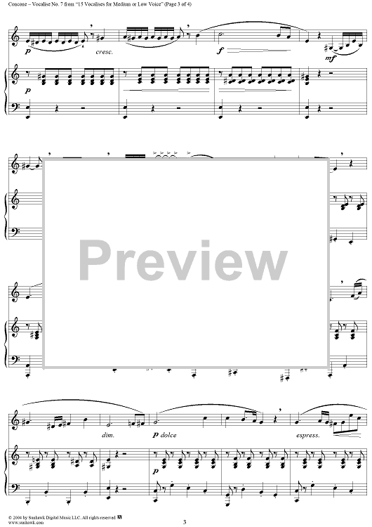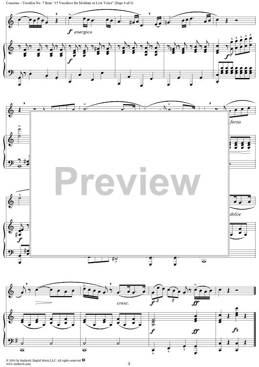 Digital Sheet Music for 15 Vocalises for Medium or Low Voice, Op. 12: No. 7 by J. Concone scored for Voice/Piano; id:303276
