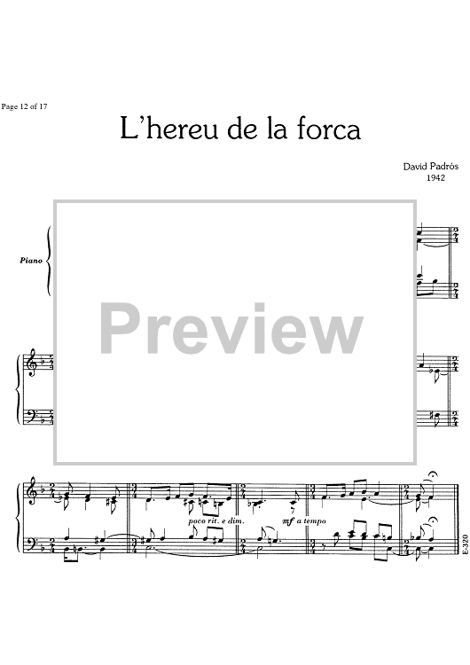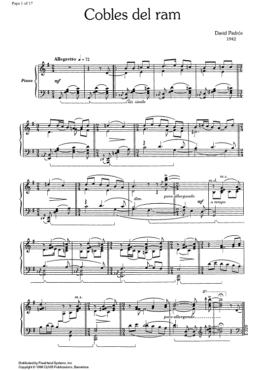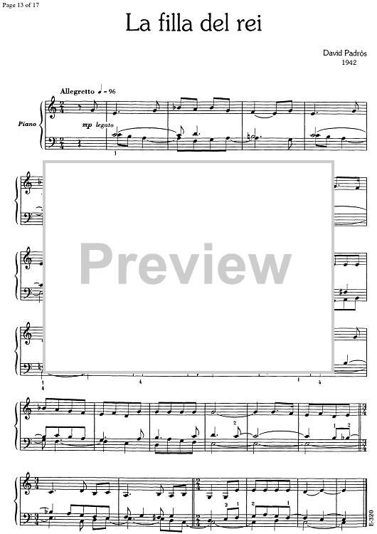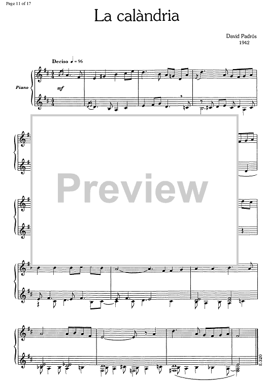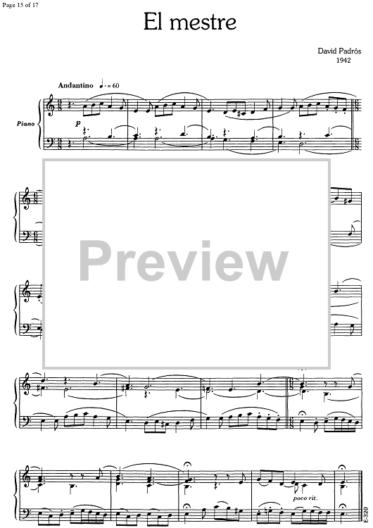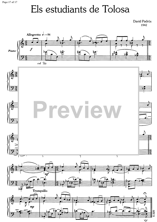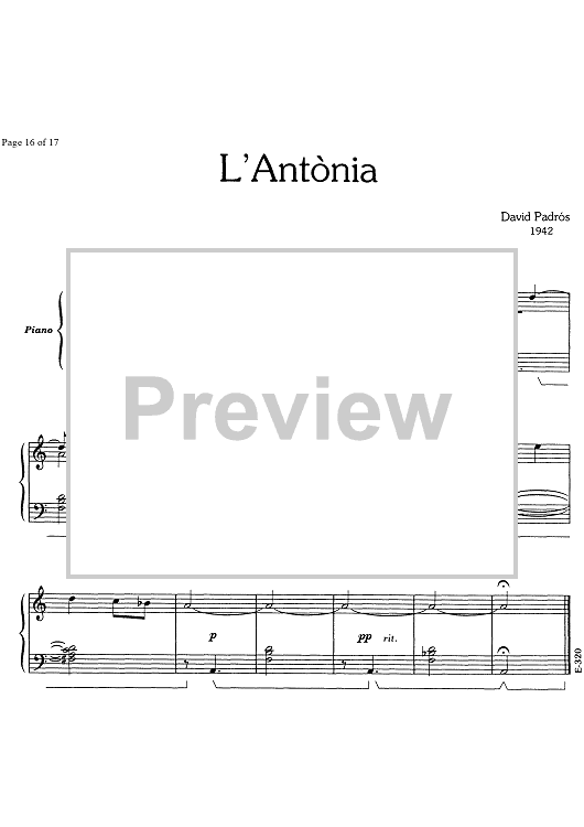 Digital Sheet Music for 17 Cançons Populars Catalanes - Piano by , David Padrós scored for Piano Solo; id:348111