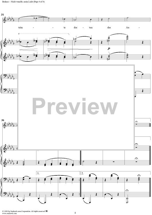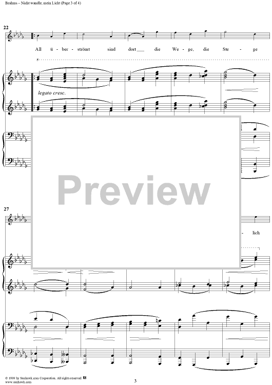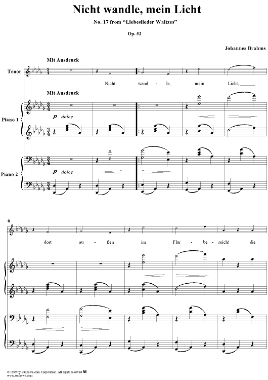 Digital Sheet Music for 17. Nicht Wandle, Mein Licht by Johannes Brahms scored for Tenor/2 Pianos, 4 Hands; id:118357