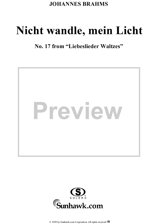"17. Nicht Wandle, Mein Licht" Sheet Music by Johannes Brahms