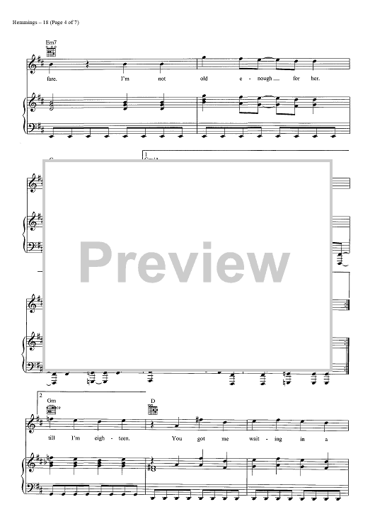 Digital Sheet Music for 18 by Richard Stannard, Ash Howes, 5 Seconds of Summer, Luke Hemmings, Michael Clifford, Roy Stride, Seton Daunt scored for Piano/Vocal/Chords; id:448529
