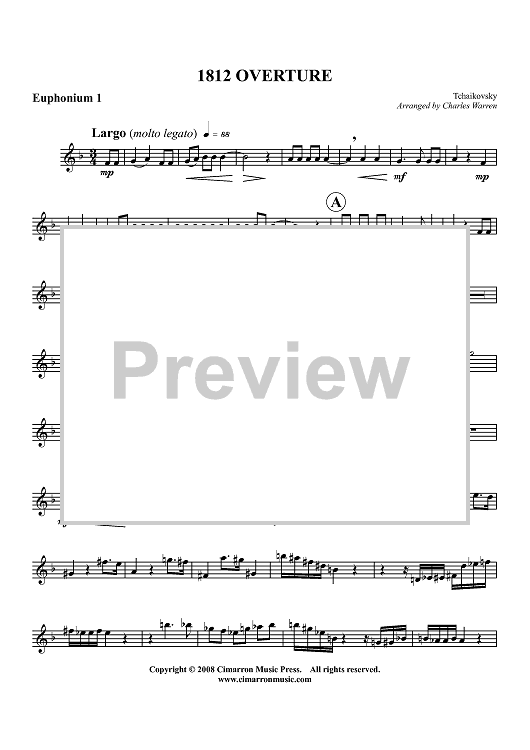 Digital Sheet Music for 1812 Overture (Overture Solennelle) - Euphonium 1 BC/TC by Charles Warren, Peter Ilyich Tchaikovsky scored for Tuba Ensemble; id:416663