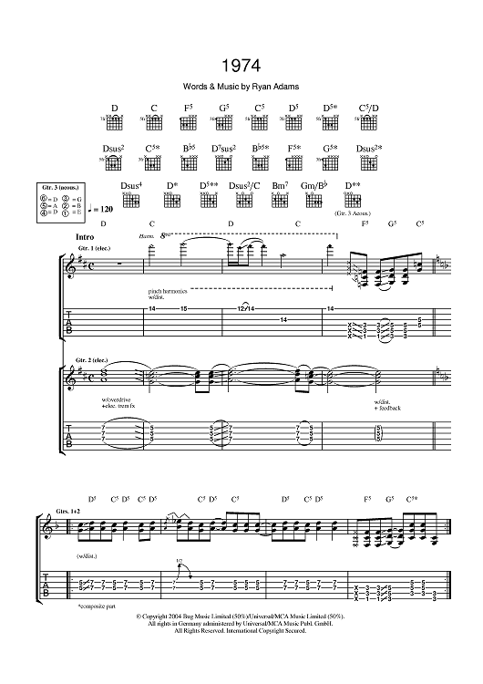 Digital Sheet Music for 1974 by Alanis Morissette, Ryan Adams scored for Guitar Tab; id:401673
