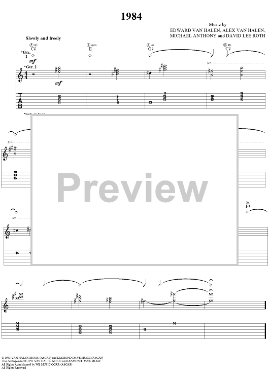 Digital Sheet Music for 1984 by Eddie Van Halen, David Lee Roth, Michael Anthony, Alex Van Halen, Van Halen scored for Guitar Tab; id:109361
