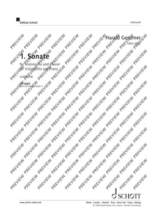 Digital Sheet Music for 1st Sonata by Harald Genzmer scored for Cello And Piano; id:496677