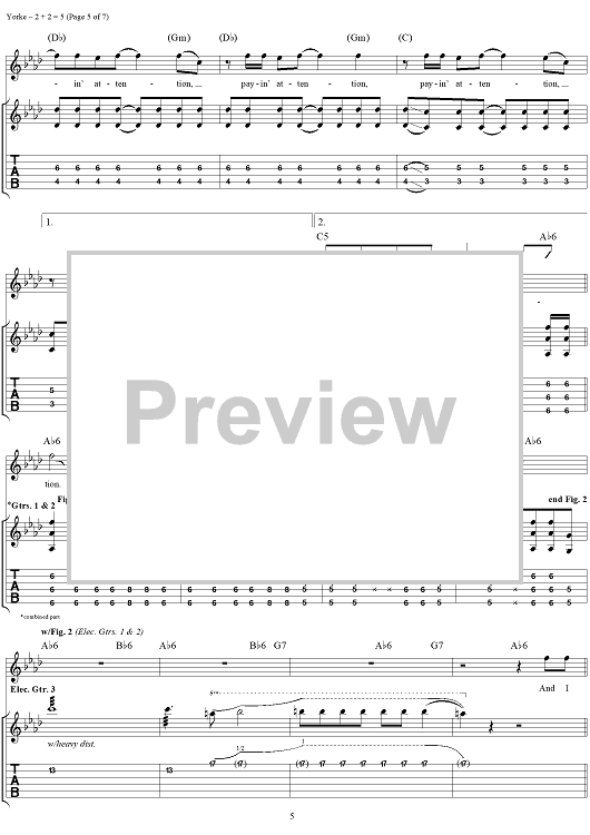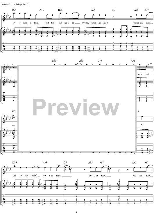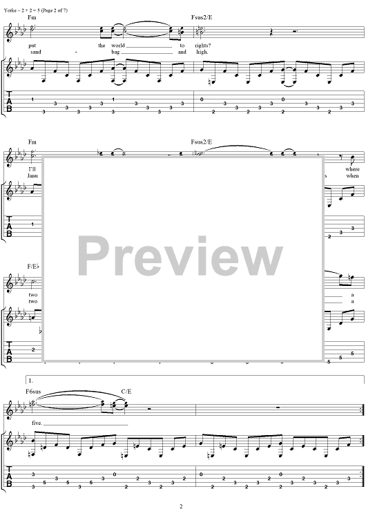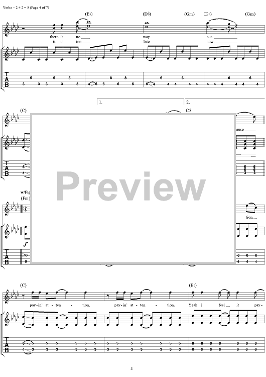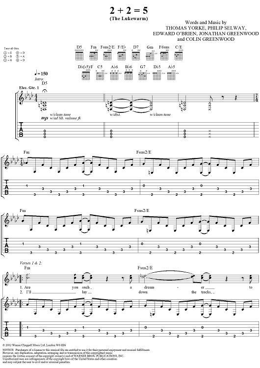 Digital Sheet Music for 2 + 2 = 5 by Thomas Yorke, Jonathan Greenwood, Philip Selway, Coz, Edward O'Brien, Radiohead scored for Guitar Tab/Vocal; id:296998