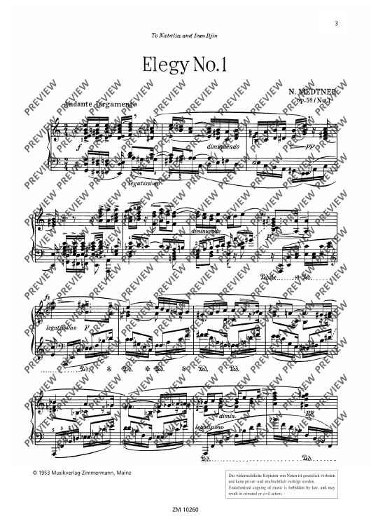 Digital Sheet Music for 2 Elegies by Nikolai Medtner scored for Piano; id:500429