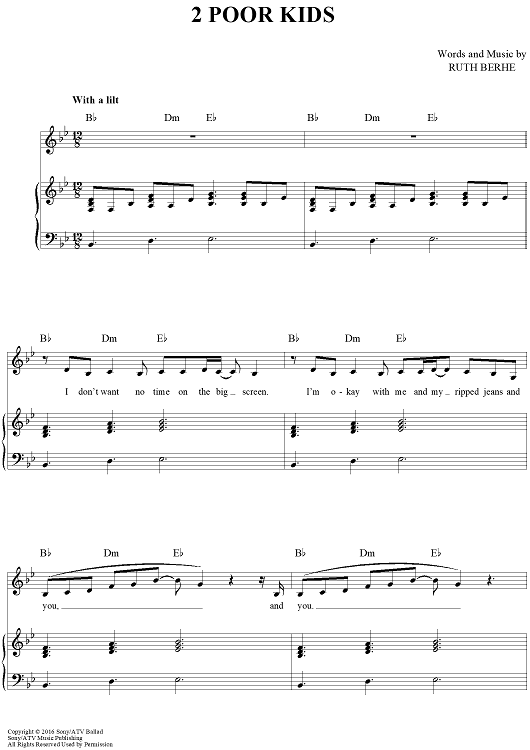 Digital Sheet Music for 2 Poor Kids by Ruth Berhe, Ruth B. scored for Piano/Vocal/Chords; id:460297
