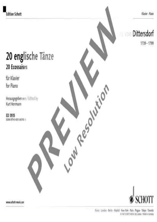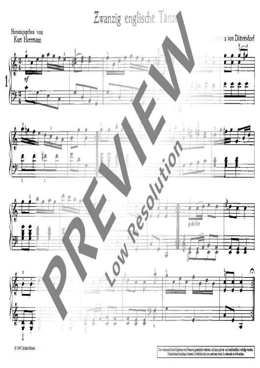 Digital Sheet Music for 20 English Dances by Karl Ditters von Dittersdorf scored for Piano; id:482553