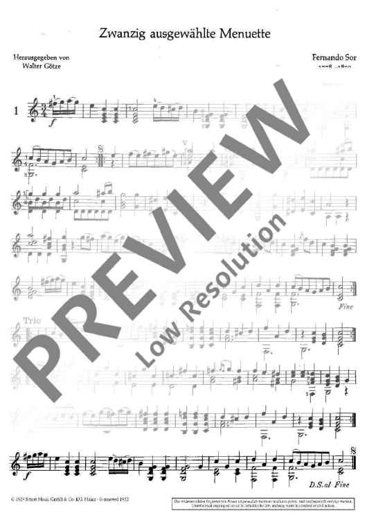 Digital Sheet Music for 20 selected Menuettes by Fernando Sor scored for Guitar; id:475684
