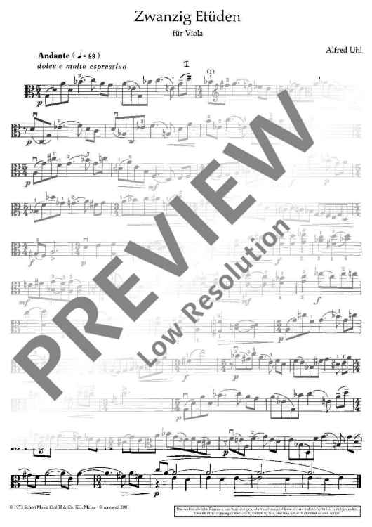Digital Sheet Music for 20 Studies by Alfred Uhl scored for Viola; id:476562