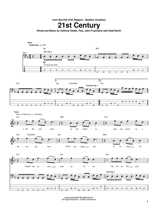 Digital Sheet Music for 21st Century by Flea, John Frusciante, Anthony Kiedis, Red Hot Chili Peppers, Chad Smith scored for Bass Tab; id:392011