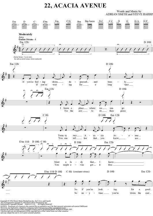 "22, Acacia Avenue" Sheet Music by Iron Maiden