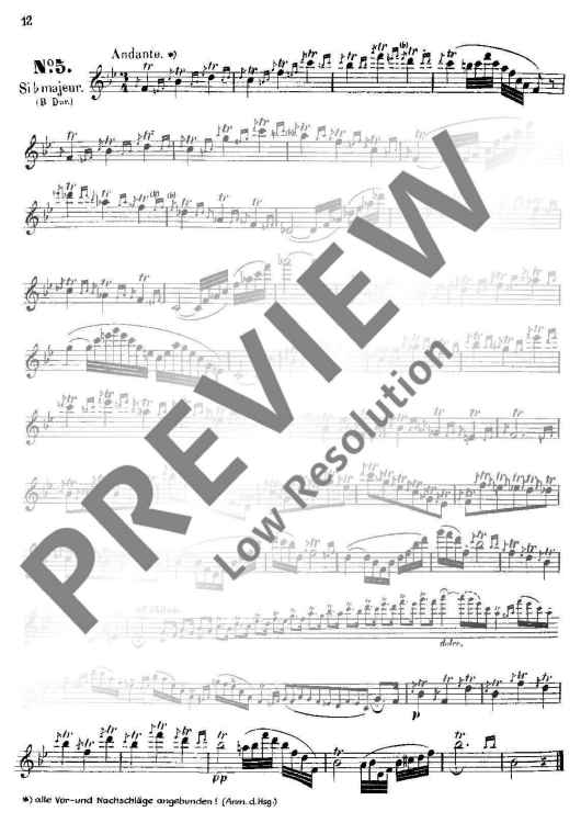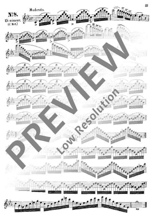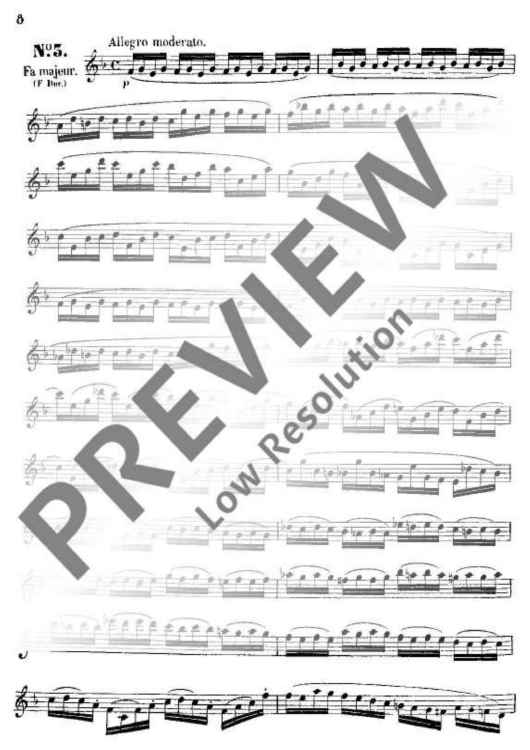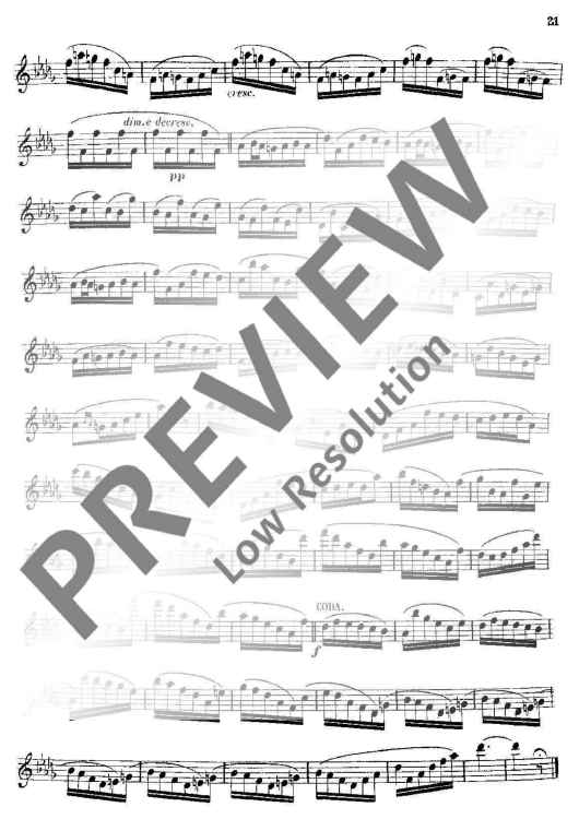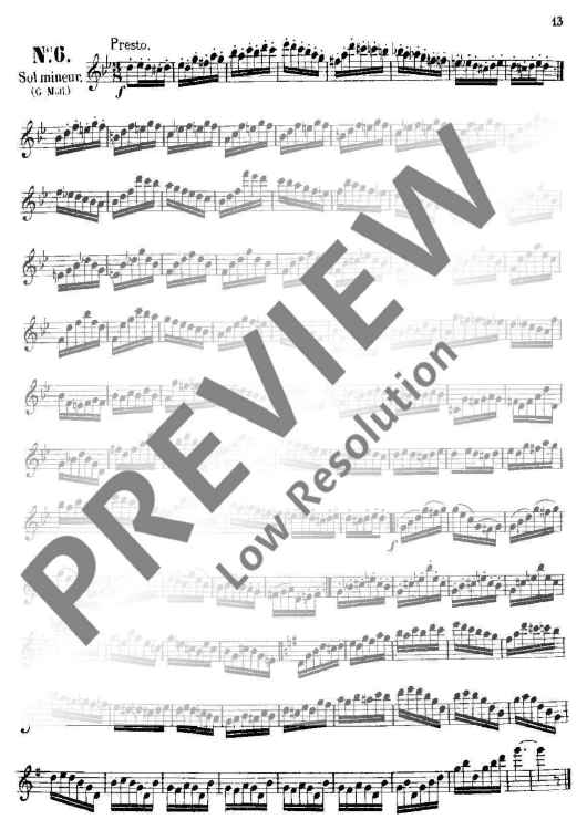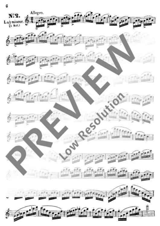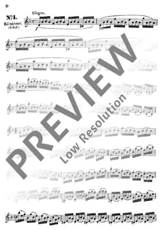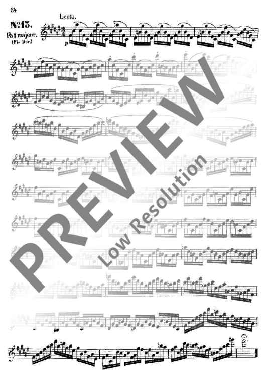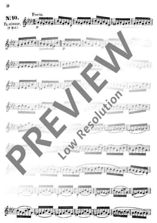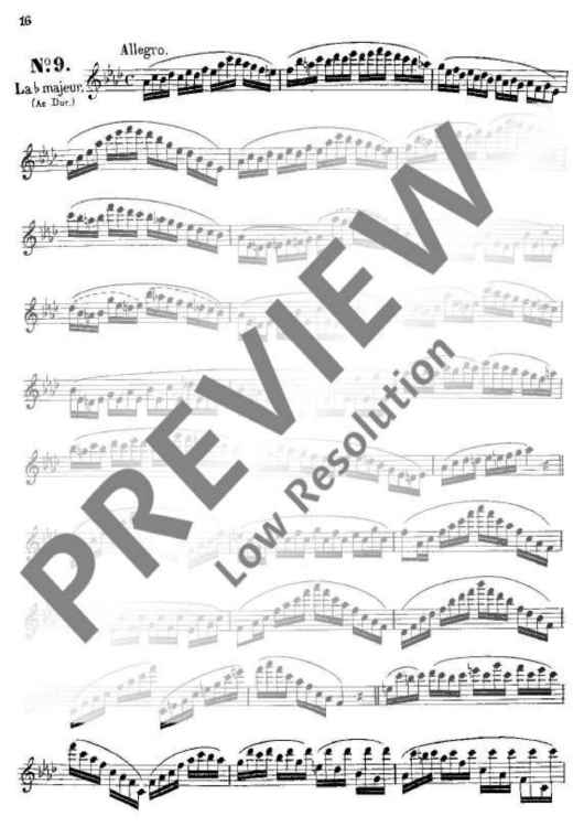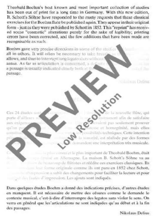 These 24 Studies were specifically written by Boehm from his intimate knowledge of the new flute which was constructed by and named after him. Their purpose was not only to demonstrate that all the 24 keys could be played reliably and smoothly, but also to provide technical exercises precisely in those areas where particular practice was necessary. This primary purpose, which also embraces the development of a good tone, is realised in different musical miniatures (caprices) which demand from the player a well-shaped, musical interpretation.