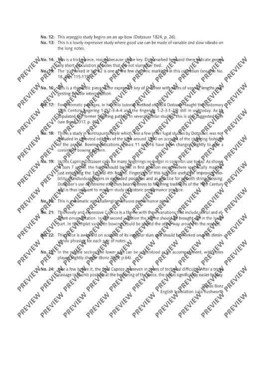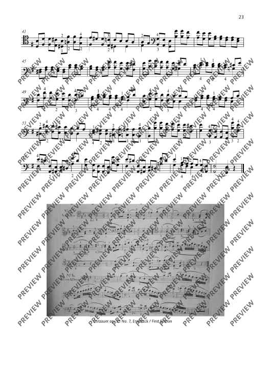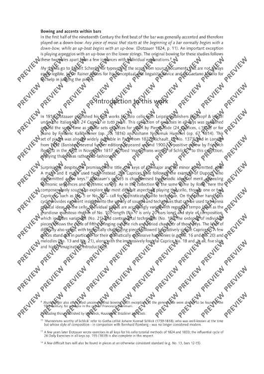 Dotzauer études have been part of the standard repertoire in cello lessons for generations. Friedrich Dotzauer (1783-1860) was among the major cellists and cello pedagogues of the 19th century and knew what makes a good étude: it should deal specifically with a certain technical problem and at the same time not be monotonous, but musically appealing. The cellist of the Leipzig Gewandhaus and the Dresden Hofkapelle managed to do that in an exemplary manner. 24 Caprici in tutti tuoni Op. 35 (1816) is Dotzauer's masterpiece, wonderfully showing off the varied tone colours and playing techniques of the violoncello. Demanding études for lessons and performances, with beautiful melodic and harmonic ideas, some with slow expressive introductions, some with artistic arpeggios or contrapuntal polyphony. Our new edition follows the original sources and contains the original text.