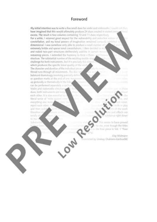 Digital Sheet Music for 24 Duos - Performing Score by Jörg Widmann scored for Violin and Cello; id:477767