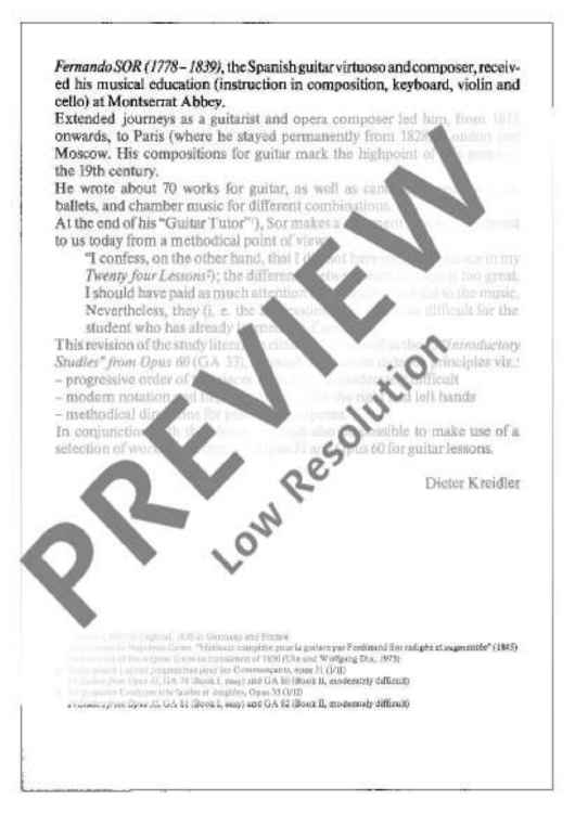 Digital Sheet Music for 24 Etudes by Fernando Sor scored for Guitar; id:475726