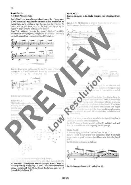 The first and foremost edition of these ever popular studies, which are to be found in almost every syllabus where the guitar is taught. This new expanded and revised edition is the only publication to reconcile the early sources of these Etudes with present day playing techniques. Several earlier editions from the 19th and 20th centuries were consulted for its preparation. The main music text is beautifully engraved with a clear and uncluttered presentation of the Etudes. This edition contains a useful section on 'Playing the Etudes' with over 50 music examples, showing alternative fingerings etc. A detailed Critical Commentary as well as historical archive material completes this new version of our highly popular 1985 edition. Highly recommended as it will meet the needs of all at whatever level. An alternative version including a CD by the German guitarist Irina Kircher is available at a very reasonably price (ZECH 470).