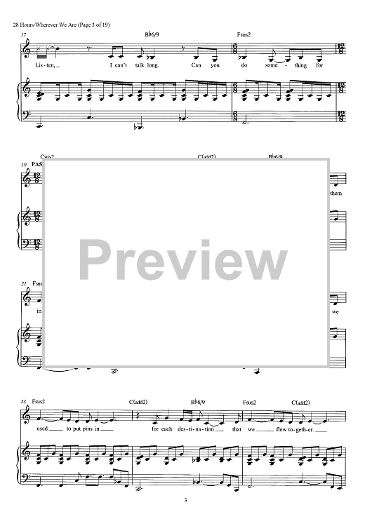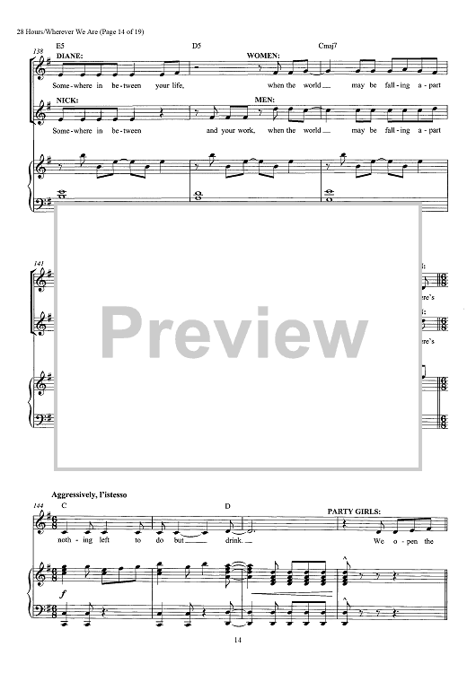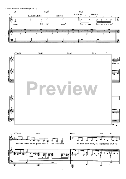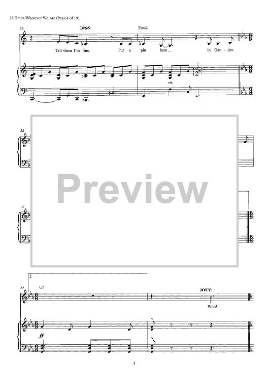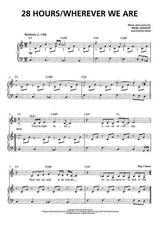 Digital Sheet Music for 28 Hours/Wherever We Are - from Come From Away by Irene Sankoff, David Hein scored for Piano/Vocal/Chords; id:466616