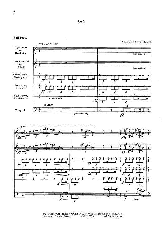 Digital Sheet Music for 3 + 2 - Score by , Harold Farberman scored for Percussion Ensemble; id:429931