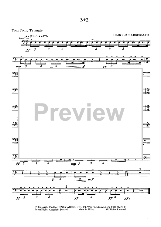 "3 + 2 - Tom-tom/Triangle" Sheet Music by Harold Farberman