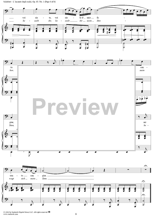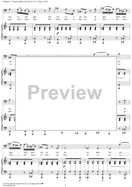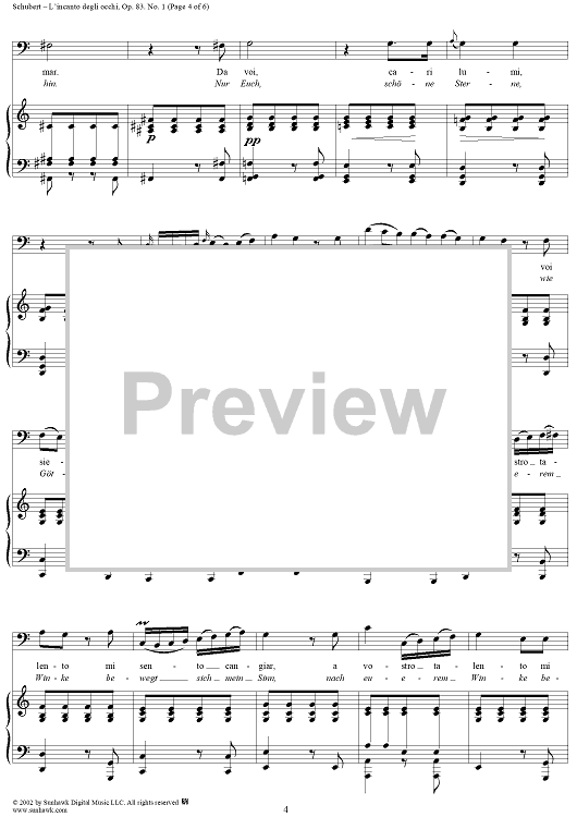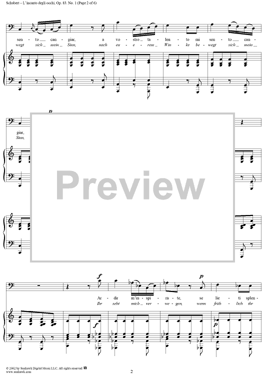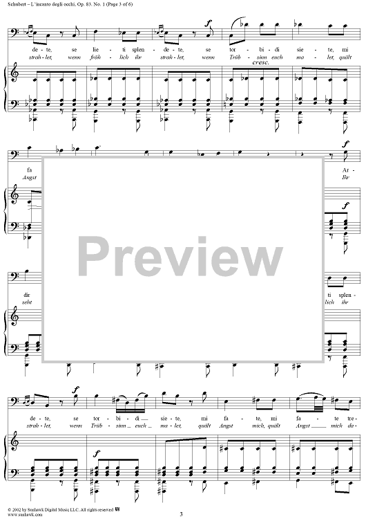 Digital Sheet Music for 3 Gesänge Op.83, No. 1 - L'incanto degli occhi, D902 by Franz Schubert scored for Voice/Piano; id:256732