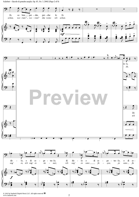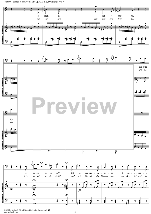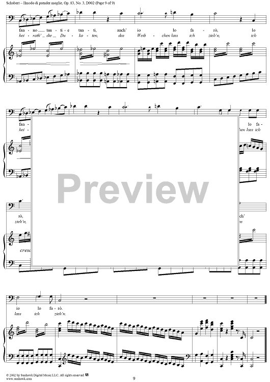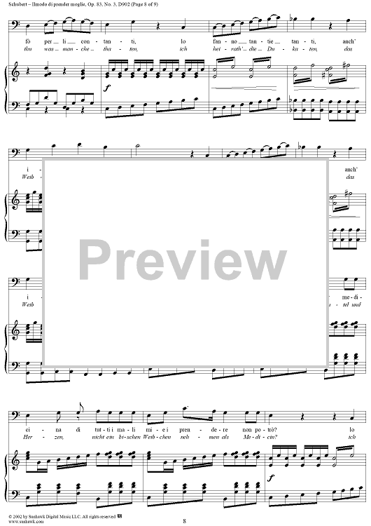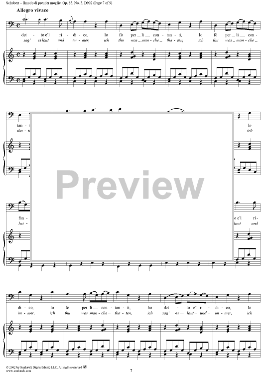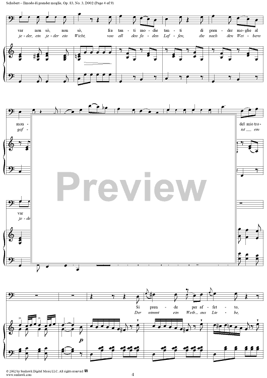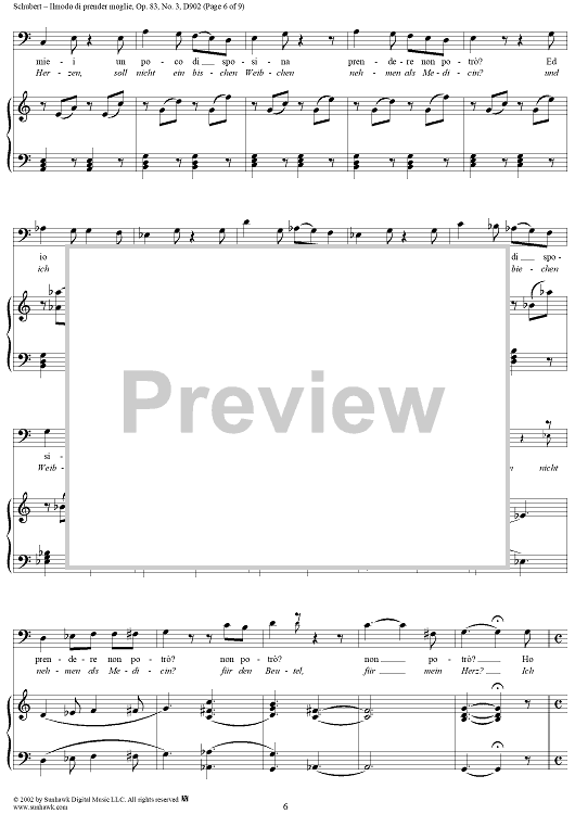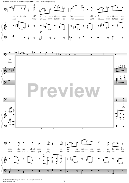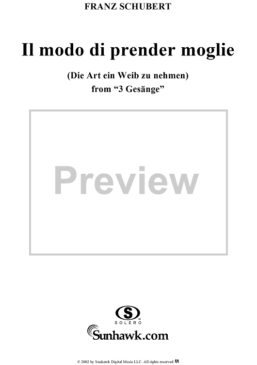 Digital Sheet Music for 3 Gesänge Op.83, No. 3 - Il modo di prender moglie, Op.83 No.3, D902 by Franz Schubert scored for Voice/Piano; id:256698