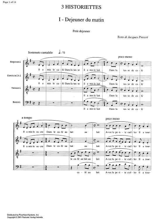 Digital Sheet Music for 3 Historiettes (Dejeuner du matin, Page d'ecriture, Les enfants) - Score by , Davide Liani scored for SATB Choir; id:353564