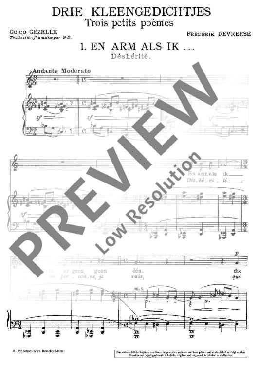 Digital Sheet Music for 3 Kleengedichtjes by Frederik Devreese scored for Voice And Piano; id:485301
