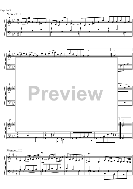 Digital Sheet Music for 3 Minuets from Clavier-Büchlein for W.F. Bach - BWV 841, 842 and 843 by Johann Sebastian Bach scored for Keyboard; id:326633