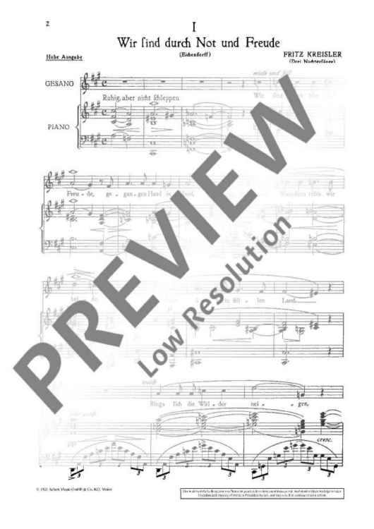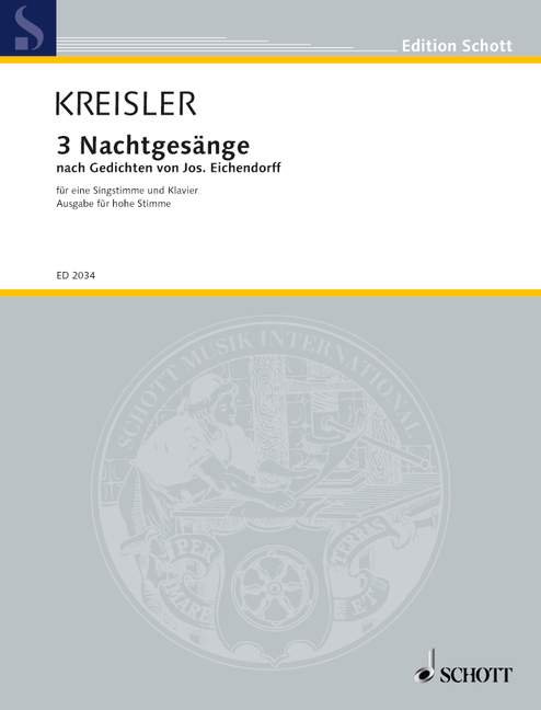 Digital Sheet Music for 3 Nachtgesänge by Fritz Kreisler scored for Voice And Piano; id:472556
