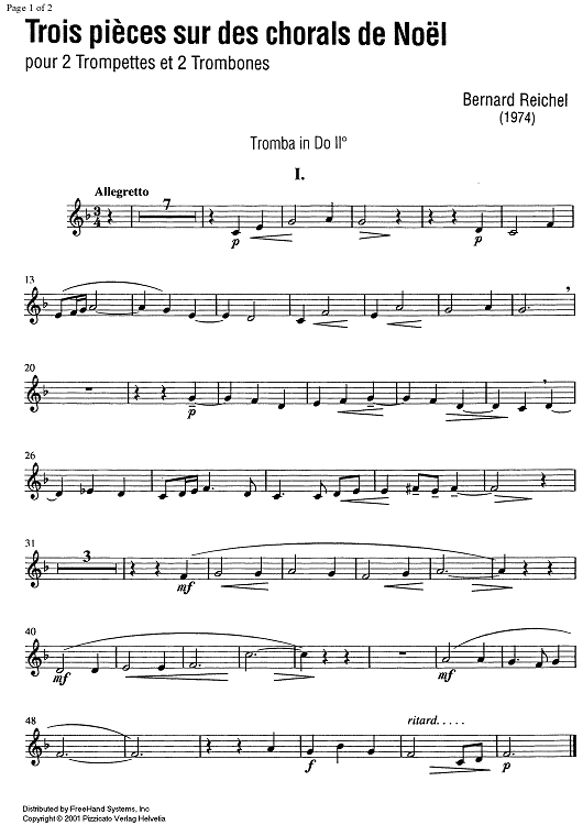 Digital Sheet Music for 3 pièces sur des chorals de Noël - Trumpet 2 by , Bernard Reichel scored for Brass Quartet; id:336278