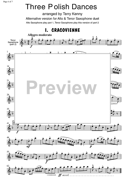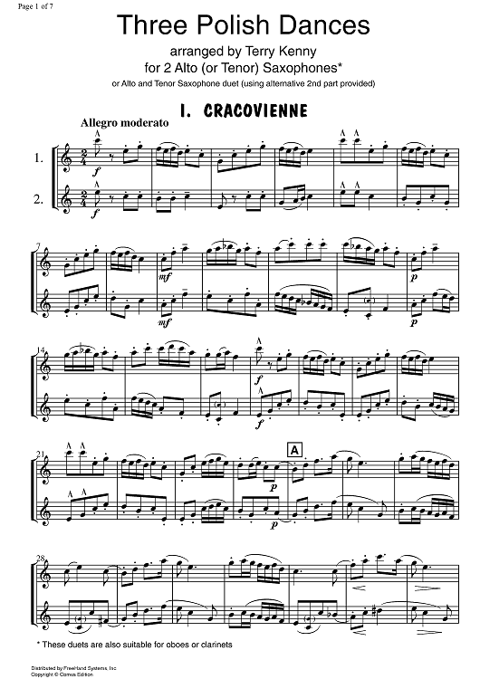 Digital Sheet Music for 3 Polish Dances by , Terry Kenny, Traditional scored for 2 Saxophones; id:322296