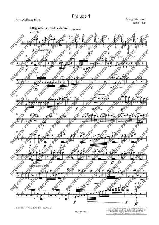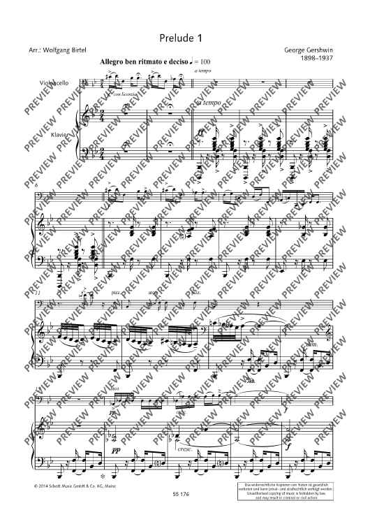The melodies from George Gershwin's (1898-1937) musicals, from 'Porgy and Bess', from orchestral pieces like 'Rhapsody in Blue' or 'An American in Paris', we all know them! But the career of the young musician started as a pianist in a music publishing house where he was to encourage customers to buy music by playing it. Soon he began to compose music himself and caught the attention of the Broadway, which paved the way to his international career. Inspired by Frédéric Chopin's 24 Préludes, he began to write his own 'Preludes' for the piano in the mid-1920s: Of the five preludes composed by him, he used two for the violin composition 'Short Story' and presented the other three at a concert on 4 December 1926. These 'Preludes' combine classical moments and jazz elements into an effective whole and can be played individually or as a little jazz sonata (fast – slow – fast). Thanks to the present arrangement, the charming miniatures are now available in a version for solo instrument and piano accompaniment.