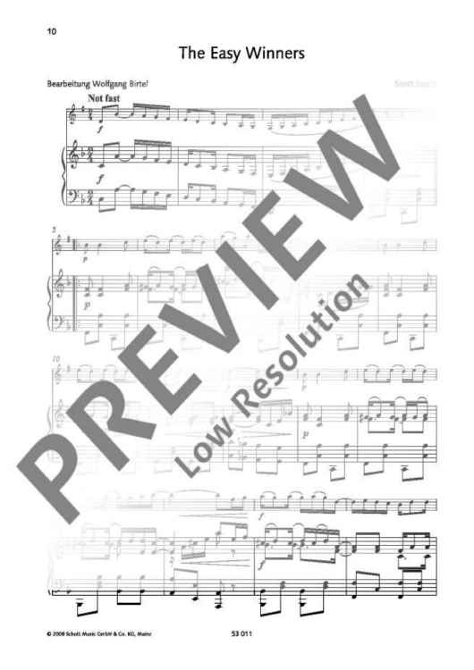 Who would have thought that ragtime would enjoy another renaissance! But more than 50 years after the death of its main representative, Scott Joplin, the film 'The Sting' has made this once popular style well-known and fashionable again. This small selection of Joplin rags is of course not complete without 'The Entertainer'. In comparison, 'Easy Winners' and 'Rag-Time Dance' are no less fun to play, particularly since in the latter the performer not only has to play but also stomp his foot. Excellent music providing entertainment for many occasions!