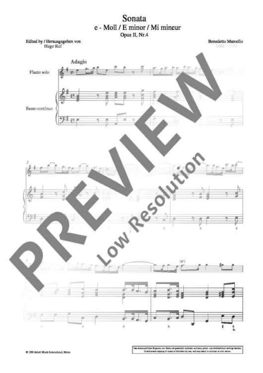 Digital Sheet Music for 3 Sonatas by Benedetto Marcello scored for Treble Recorder (flute) And Basso Continuo; id:483191