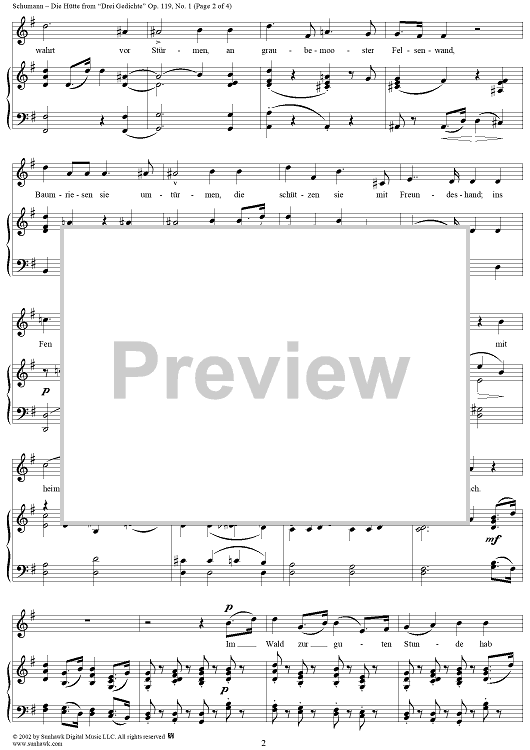 Digital Sheet Music for 3 Songs, Op. 119, No. 1 - Die Hütte - No. 1 from "Three Poems" op. 119 by Robert Schumann, S. Pfarrius scored for Voice/Piano; id:258254