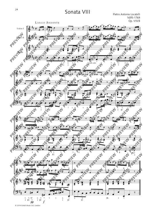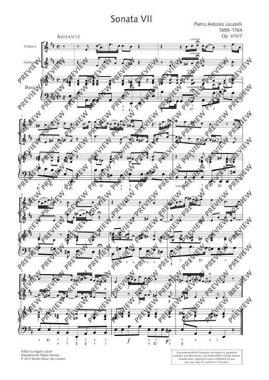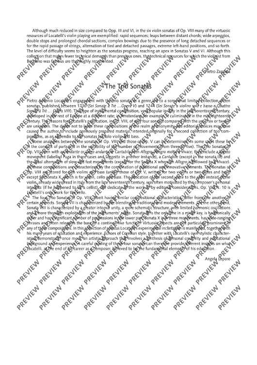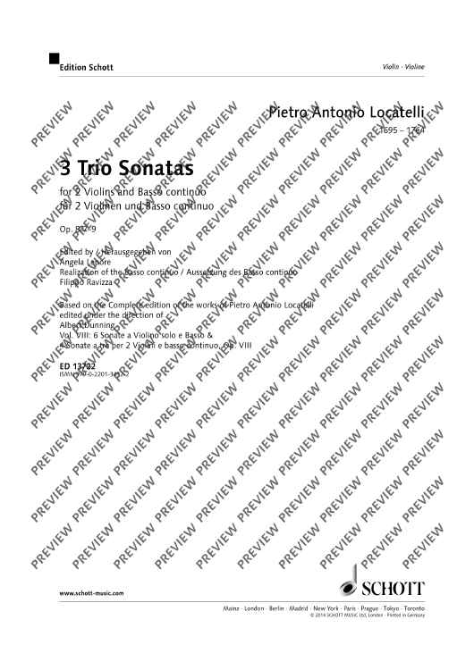 Digital Sheet Music for 3 Trio Sonatas by Pietro Antonio Locatelli, Filippo Ravizza scored for 2 Violins And Basso Continuo; id:485785