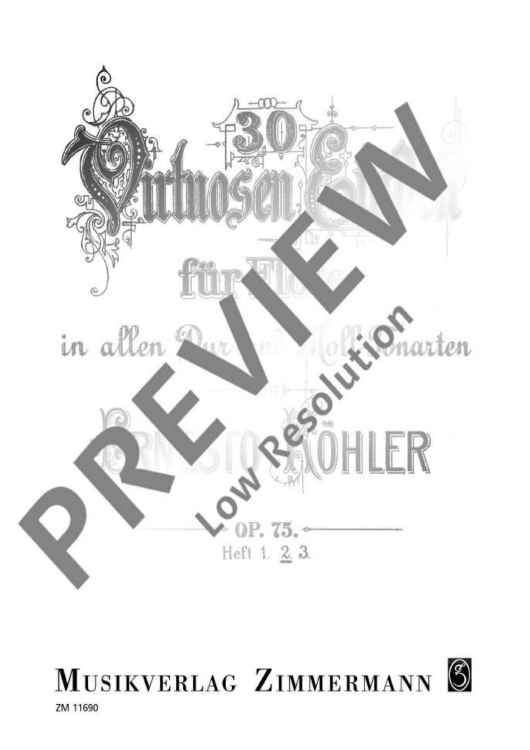 Digital Sheet Music for 30 Virtuoso Etudes in all major and minor keys by Ernesto Koehler scored for Flute; id:493597