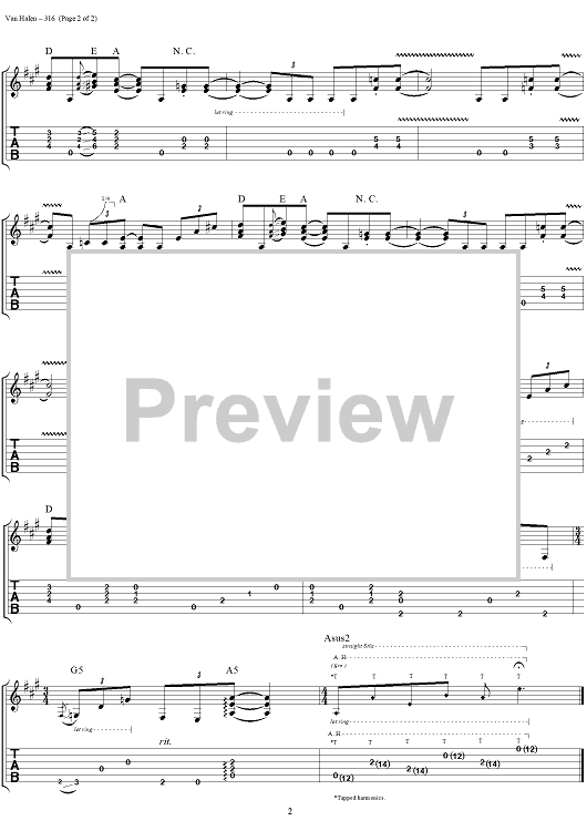 Digital Sheet Music for 316 by Eddie Van Halen, Sammy Hagar, Michael Anthony, Alex Van Halen, Van Halen scored for Guitar Tab/Vocal; id:113519