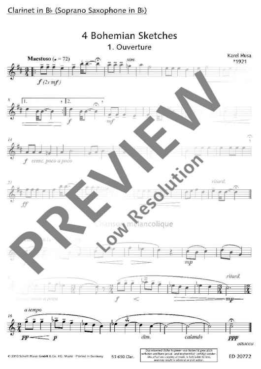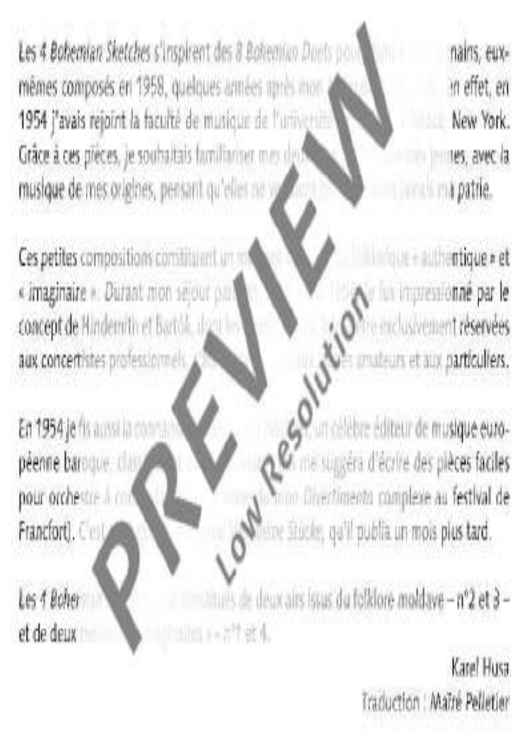 "4 Bohemian Sketches" Sheet Music by Karel Husa