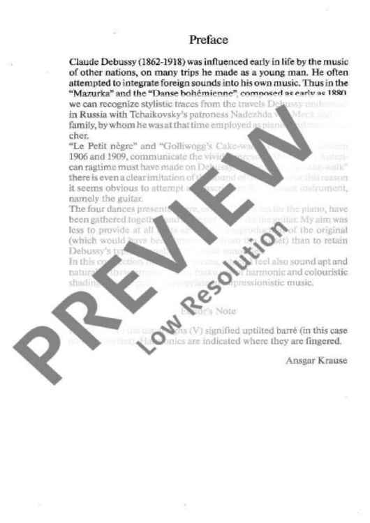 Digital Sheet Music for 4 Dances by Claude Debussy, Ansgar Krause scored for Guitar; id:475850