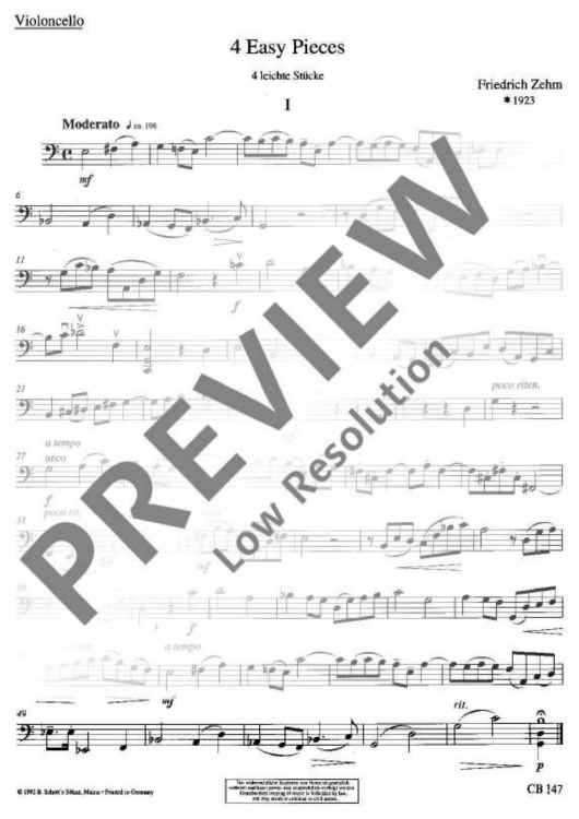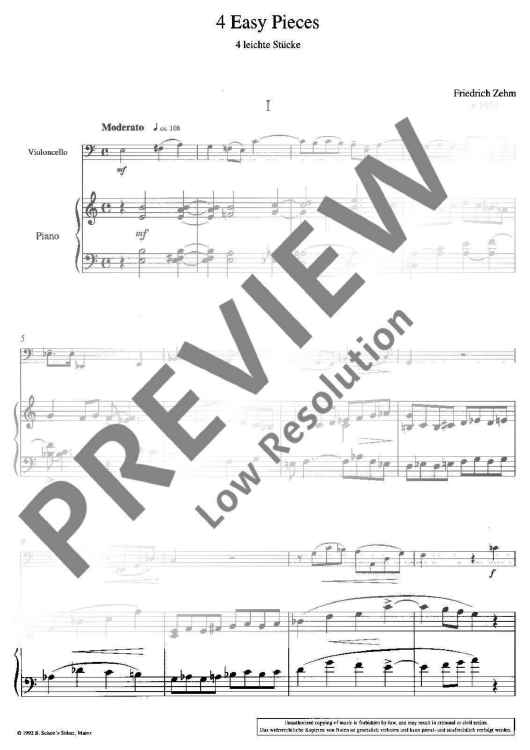 Digital Sheet Music for 4 easy pieces by Friedrich Zehm scored for Cello And Piano; id:482730