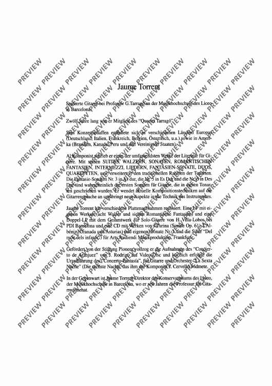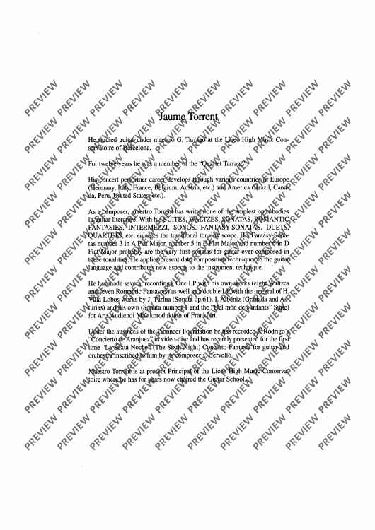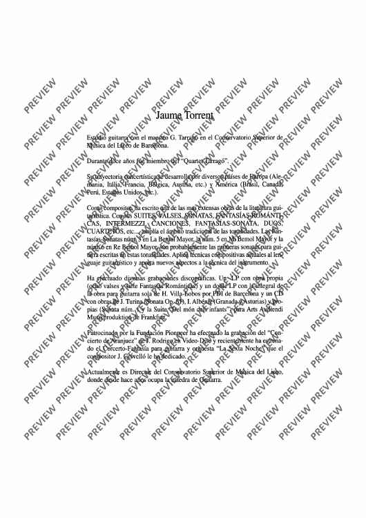 J. Torrent (born 1953) is a leading Spanish guitar virtuoso. His own compositions for guitar are delightfully tonal, combining contemporary playing technique and rarely used clefs with a basically romantic approach.