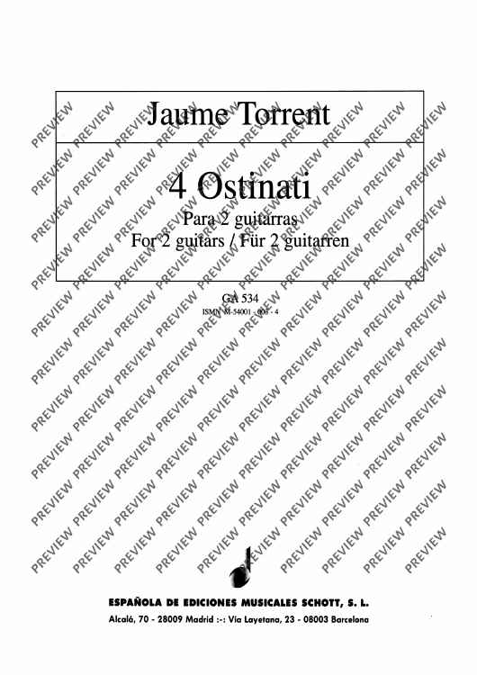 "4 Ostinati - Performing Score" Sheet Music by Jaume Torrent