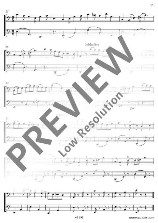 In the 1920s, Paul Hindemith wrote several pieces for children or adult hobby musicians. Together with his wife Gertrud, he took great pleasure in making music at home, and as Gertrud had begun to play the violoncello in adulthood, her husband composed six duos for violoncello and varying accompaniment between 1938 and 1944. The cello part was adapted to the technical level of Gertrud Hindemith, the second part was played by the composer himself who knew to play almost all instruments. He was known to be a skilled bassoonist. With the exception of Drei kleine Stücke für Cello und Klavier (ED 2771) composed in Europe in 1938, these duos never left Hindemith's private sphere for which they had been written during his lifetime but were only published after the couple's death. The new separate edition of 4 Stücke für Fagott und Cello is based on the text of the Hindemith Complete Edition which published the original version on the basis of the complete fair copy of the composition in 2009 for the first time.